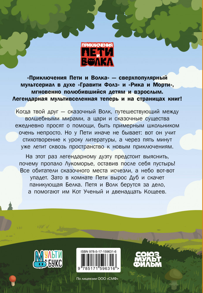 💳 Оплатить за товар можно при получении 🇰🇿 Есть бесплатная доставка по Казахстану от 1 дня 🎁 Копите бонусы с каждой покупки Серия: Приключения Пети и Волка Когда твой друг — сказочный Волк, путешествующий между волшебными мирами, а цари и сказочные существа ежедневно просят о помощи, быть примерным школьником очень непросто. Но у Пети иначе не бывает: вот он учит стихотворение к уроку литературы, а через пять минут уже летит сквозь пространство к новым приключениям. На этот раз легендарному дуэту предстоит выяснить, почему пропало Лукоморье, оставив после себя пустырь! Все обитатели сказочного места исчезли, а небо вот-вот упадет. Зато в комнате Пети вырос Дуб и скачет паникующая белка. Петя и Волк берутся за дело, а помогают им Кот Ученый и двенадцать Кощеев. |