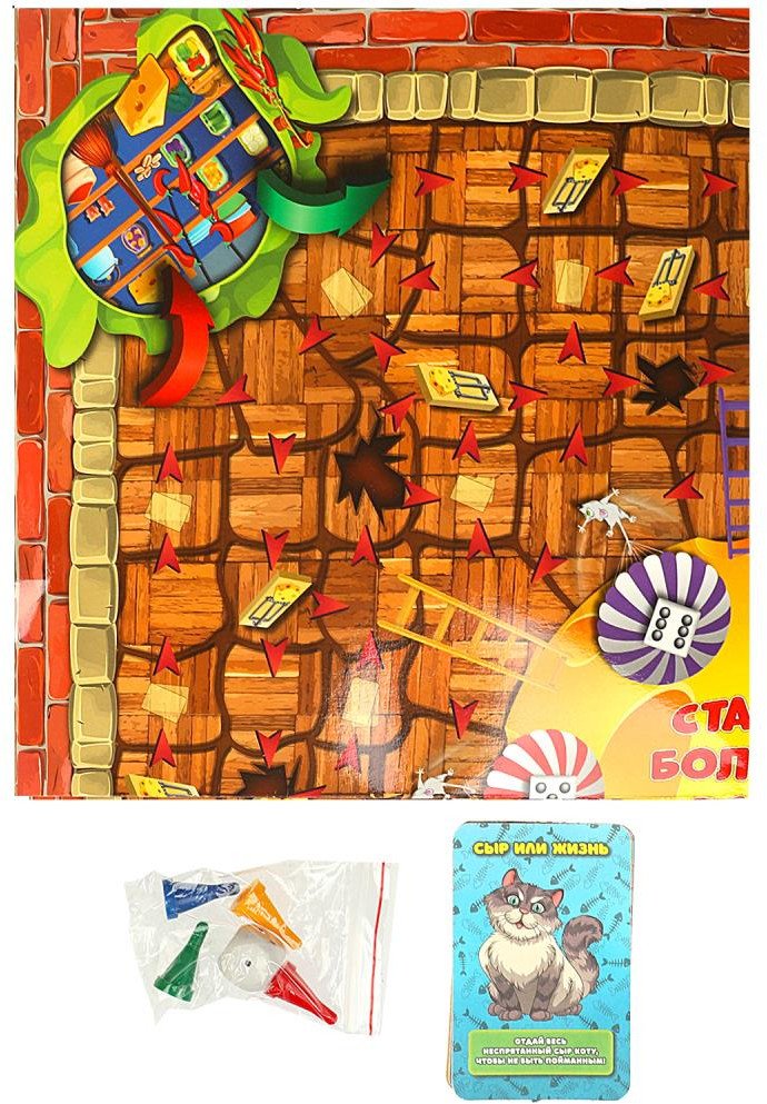 💳 Оплатить за товар можно при получении 🇰🇿 Есть бесплатная доставка по Казахстану 🎁 Копите бонусы с каждой покупки Вот это удача: хозяева дома обронили целую голову сыра! Кажется, юркие мышата смогут наполнить свои кладовые вкусным лакомством и устроить настоящий пир. Но не так-то просто утащить в норку огромный ломоть сыра — придётся отщипывать от него понемножку, чтобы собрать как можно больше лакомых кусочков. Но нужно быть осторожнее, ведь помимо других мышат, желающих стащить вашу добычу, на пути подстерегают опасные мышеловки. Кроме того, сыр хозяев охраняет большой рыжий кот, который в любой момент может поймать мышонка за длинный хвостик! Вам предстоит перемещаться по игровому полю, выполнять задания со специальных карточек, собирать кусочки сыра и избегать встреч с котом. Пройдите все препятствия и соберите как можно больше кусочков сыра, чтобы стать победителем! |