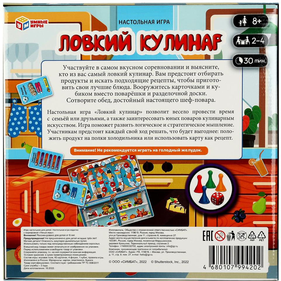 Умные игры Настольная игра «Ловкий кулинар»В данный момент этот товар отсутствует в продаже. Возможно, у нас найдется аналогичный или похожий товар здесь. Участвуйте в самом вкусном соревновании и выясните, кто из вас самый ловкий кулинар! Вам предстоит отбирать продукты и искать подходящие рецепты, чтобы приготовить свои лучшие блюда. Победит тот игрок, который наберёт наибольшее количество баллов к завершению игры. Вооружитесь карточками и кубиком вместо поварёшки и разделочной доски и сотворите обед, достойный настоящего шеф-повара! |