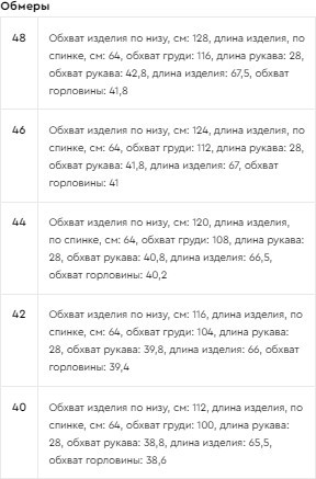 Размер производителя