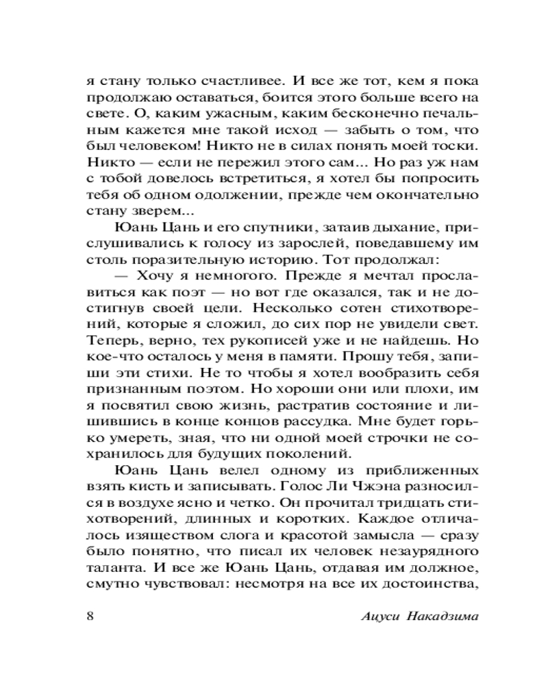 Наконец то я дождалась перевода произведений Накадзимы на русский!! Это сборник из 9-ти рассказов,пока не читала. Книга малюсенькая,думаю прочитать за вечер. Качеством осталась довольна.