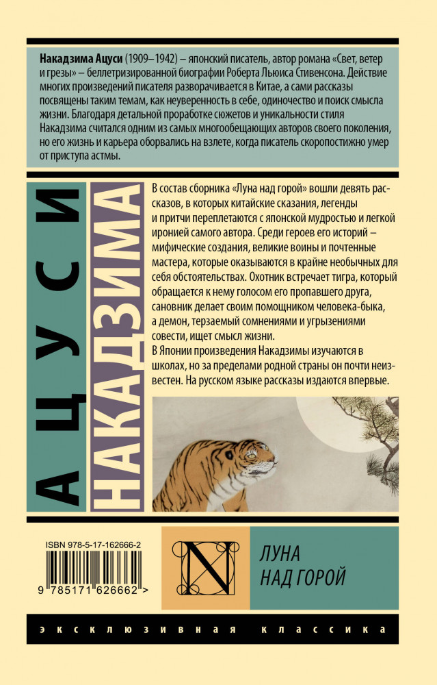 💳 Оплатить за товар можно при получении 🇰🇿 Есть бесплатная доставка по Казахстану от 1 дня 🎁 Копите бонусы с каждой покупки Серия: Эксклюзивная классика В состав сборника «Луна над горой» вошли девять рассказов, в которых китайские сказания, легенды и притчи переплетаются с японской мудростью и легкой иронией самого автора. Среди героев его историй — мифические создания, великие воины и почтенные мастера, которые оказываются в крайне необычных для себя обстоятельствах. Охотник встречает тигра, который обращается к нему голосом его пропавшего друга, сановник делает своим помощником человека-быка, а демон, терзаемый сомнениями и угрызениями совести, ищет смысл жизни. В Японии произведения Накадзимы изучаются в школах, но за пределами родной страны он почти неизвестен. |