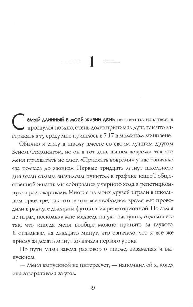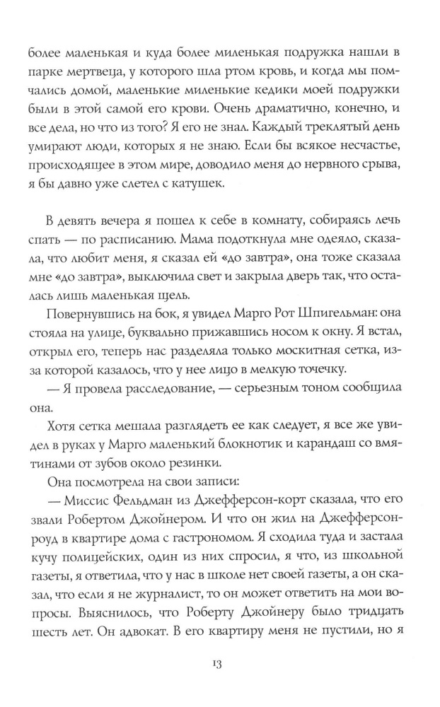Бумажные городаВ данный момент этот товар отсутствует в продаже. Возможно, у нас найдется аналогичный или похожий товар здесь. Серия: Один день Выпускник школы Кью Джейкобсен с детских лет тайно влюблен в свою прекрасную и дерзкую соседку Марго Рот Шпигельманн. Поэтому, когда однажды ночью она приглашает его принять участие в «карательной операции» против ее обидчиков, он соглашается. Но, придя в школу после их ночного приключения, Кью узнает, что Марго исчезла… оставив для него лишь таинственные послания, которые он должен разгадать, чтобы найти девушку. И Кью бросается в отчаянную погоню, но девушки, которая долгие годы царила в его сердце, на самом деле нет. |