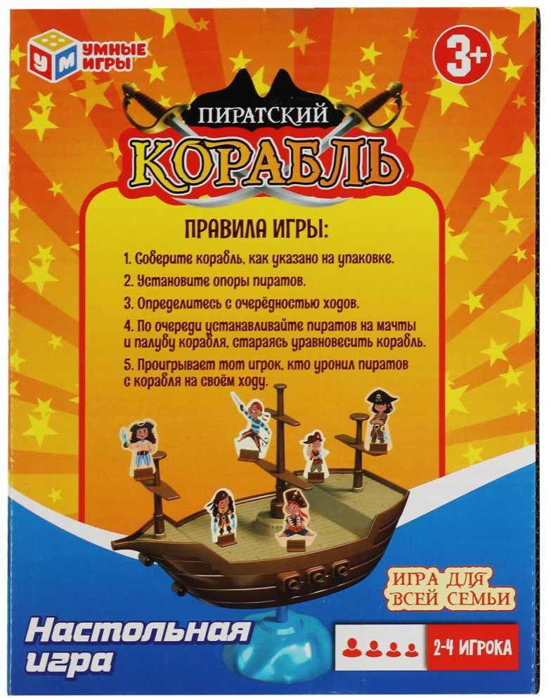 💳 Оплатить за товар можно при получении 🇰🇿 Есть бесплатная доставка по Казахстану 🎁 Копите бонусы с каждой покупки Настольная игра «Пиратский корабль» ТМ «Умные игры» непременно понравится детям! Эта увлекательная игра поможет детям изучить принцип рычага, найти баланс и провести множество весёлых минут. |