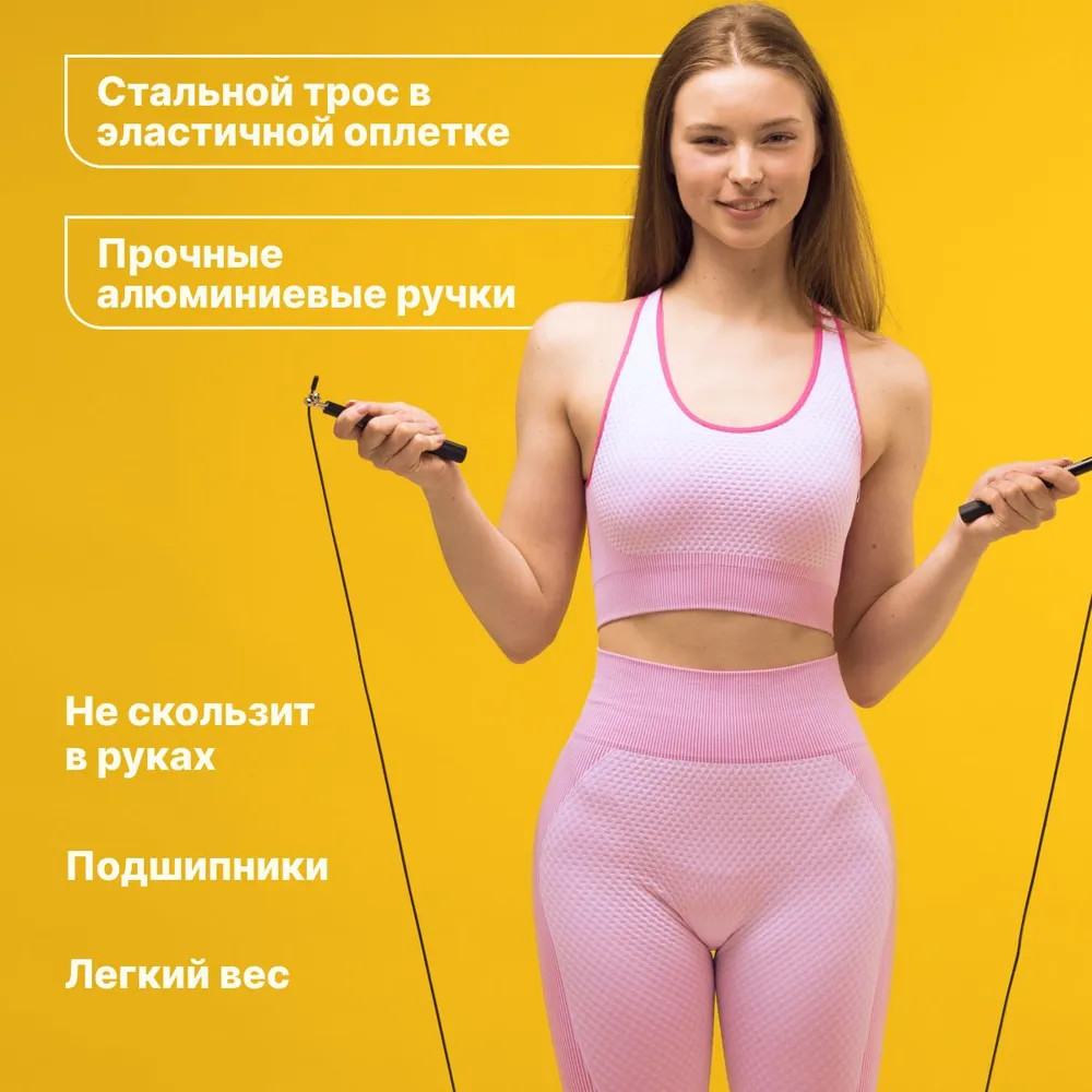 Скоростная скакалка с прочными алюминиевыми ручками — это идеальный тренажер для тех, кто хочет улучшить свою физическую форму. Скакалка изготовлена из высококачественных материалов, которые обеспечивают долговечность и надежность в использовании. Особенностью этой скакалки является ее регулируемый размер. Вы можете легко настроить длину троса под свой рост и уровень подготовки. Это позволяет использовать скакалку как новичкам, так и опытным спортсменам. Стальной трос скакалки обеспечивает высокую скорость вращения, что позволяет увеличить интенсивность тренировок и достичь максимального эффекта. Кроме того, ручки скакалки имеют специальное покрытие, которое предотвращает скольжение в руках во время тренировок.