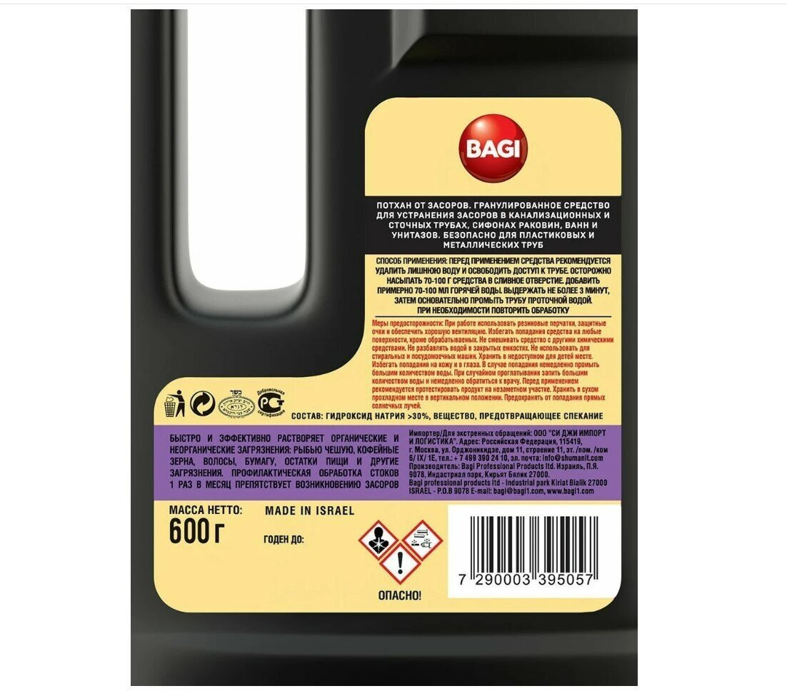 Средство для прочистки канализационных труб «Потхан» — маленькие гранулы, расфасованные в прочные ПВХ-бутыли по 600 г. Такое тарирование практично для бытовых условий, небольших офисов и учреждений. Сбалансированность состава и быстрота воздействия обеспечивают безопасность металлических и пластиковых труб. Обработка не оставляет в помещении химического запаха. Концентрированный препарат удаляет засоры любых типов. Систематическое применение препарата избавит от необходимости механической прочистки системы.