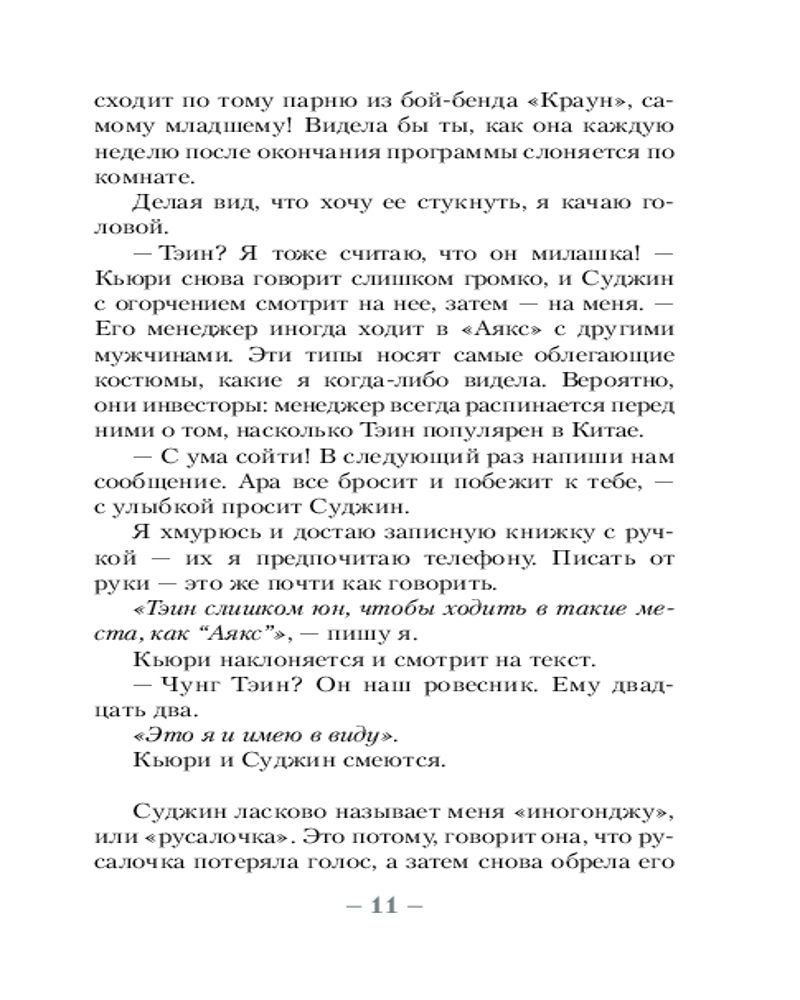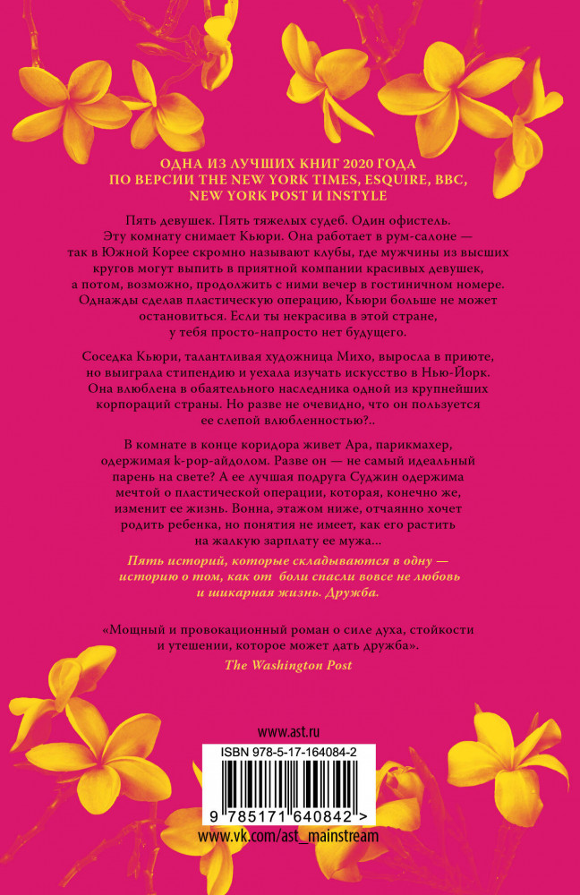 Книжка компактная и её удобно брать с собой, так что я успела побывать с ней везде за период чтения. Правда, из-за того что это не самый качественный мягкий переплёт, к середине чтениях роман превращается в маленький круасанчик что сворачивается в обратную сторону.. Хотя, меня лично это не особо волнует. Что касательно содержания, книжка правда вкусная. Великая интрига здесь отсутствует, хотя, она вам и не понадобится. Замес тут в другом – в персонажах, их жизнях, мыслях и абсолютно разных взглядах на мир. Вот смотришь на весь этот набор и думаешь: какой колорит...За ними не скучно наблюдать: тут тебе и про детские травмы, жесткость людей, порочность, алчность, про тайные и не всегда самые благие намерения, желания человеческой души. Мне нравится стиль писания, мне нравится подача Френсис. Всё это написано очень интересно, хоть и секреты и скелеты в шкафу героинь, так и не получают своего звёздного часа, я считаю что изюминка книги именно в этом быту и событиях что происходит здесь и сейчас – сегодня. Ещё меня завлекла атмосфера Кореи, раскрытие её как страны со своей темной стороной и жестоким обществом. Книга не перевернёт ваш мир, не откроет вам новую вселенную. Но как по мне, она стоит потраченных на неё 2-3 дней чтения.