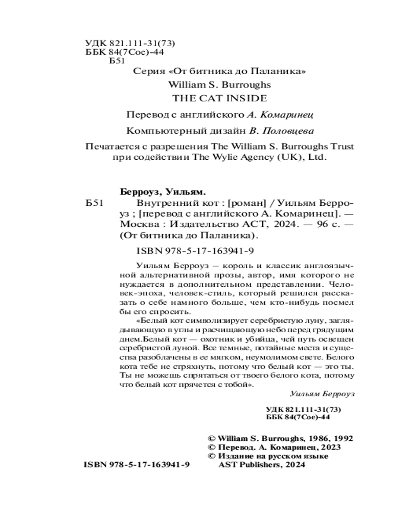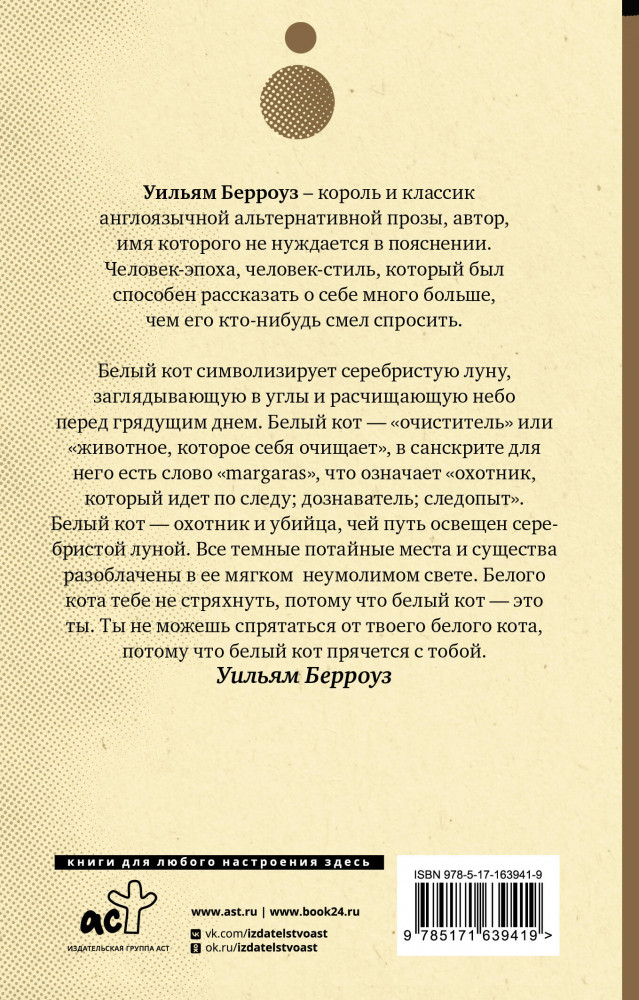 💳 Оплатить за товар можно при получении 🇰🇿 Есть бесплатная доставка по Казахстану от 1 дня 🎁 Копите бонусы с каждой покупки Серия: От битника до Паланика (м) Уильям Берроуз (1914-1997) — американский писатель и эссеист, король и классик англоязычной альтернативной прозы, автор, имя которого не нуждается в дополнительном представлении. Человек-эпоха, человек-стиль, который решился рассказать о себе намного больше, чем кто-нибудь посмел бы его спросить. |