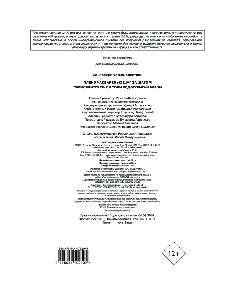 💳 Оплатить за товар можно при получении 🇰🇿 Есть бесплатная доставка по Казахстану от 1 дня 🎁 Копите бонусы с каждой покупки Серия: Начни рисовать. Лучшие книги для начинающих Эта вдохновляющая книга станет вашим личным гидом в мире живописи, открывая безграничные возможности творчества под открытым небом. Забудьте о перфекционизме и ощутите настоящую свободу творчества. Пусть каждый пейзаж, рассвет и закат становятся источниками вдохновения, а акварель, благодаря своей невесомой текстуре, позволить запечатлеть каждый неповторимый момент. |