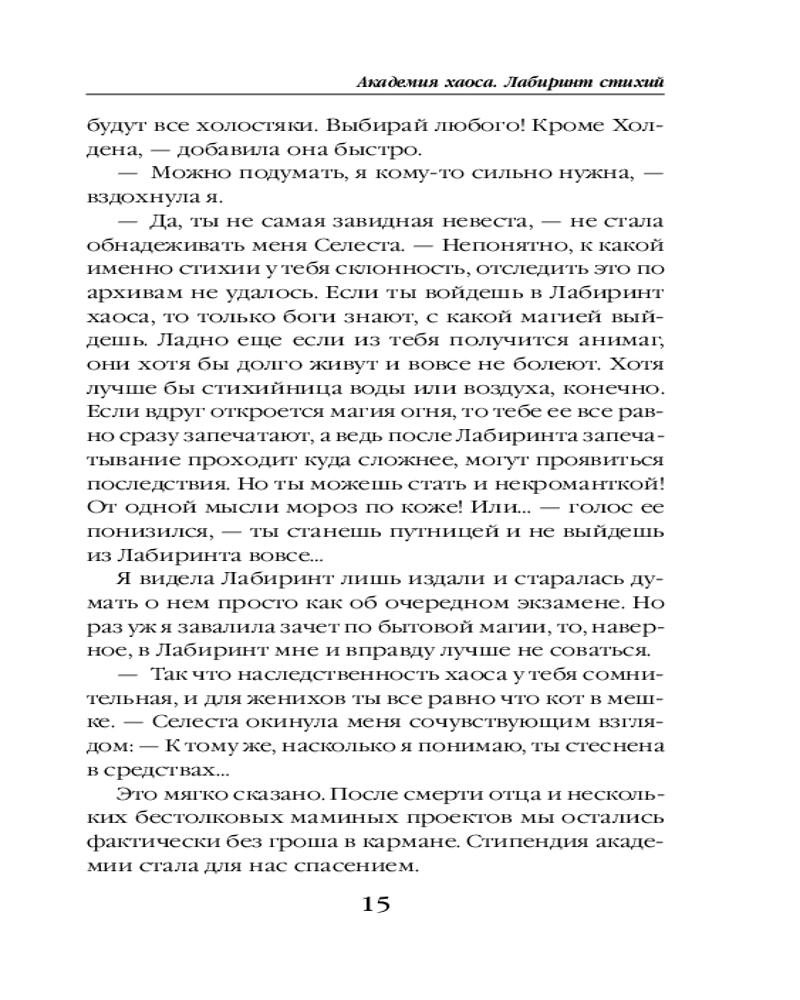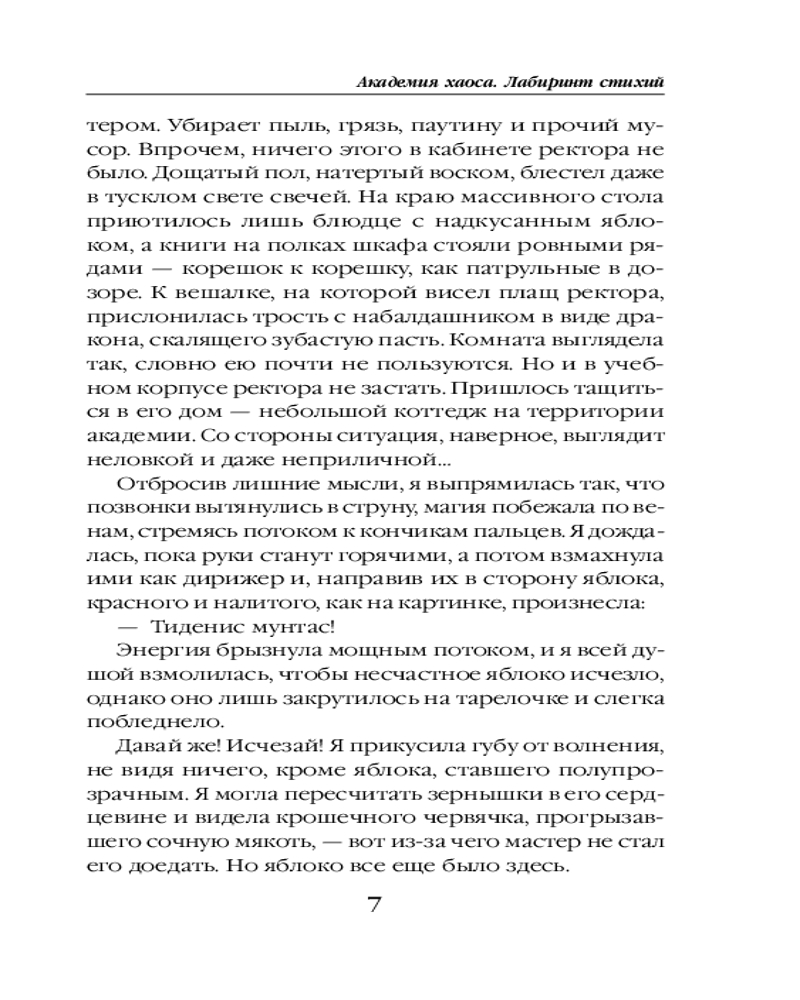 💳 Оплатить за товар можно при получении 🇰🇿 Есть бесплатная доставка по Казахстану от 1 дня 🎁 Копите бонусы с каждой покупки Серия: Академия магии В моей крови проснулся хаос, и теперь я должна научиться им управлять или запечатать его навсегда. В академии своя атмосфера: преподаватели то ли учат, то ли калечат, по ночам в общежитии шастает призрак, а на горизонте видна стена, за которую меня отправят в патруль, — убивать тварей хаоса. После первого курса все студенты отправляются в лабиринт стихий, где хаос принимает одну из шести форм. Я не знаю, кем выйду из лабиринта и выйду ли из него вовсе, но как иначе понять, кто я такая? |