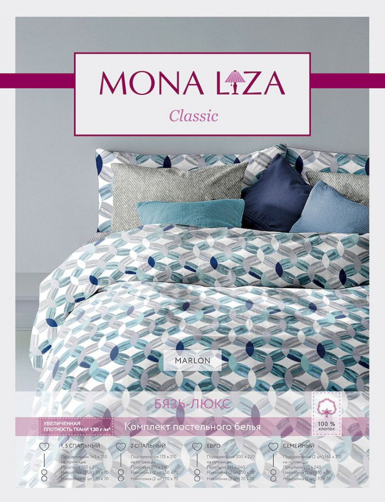 Торговая марка домашнего текстиля «Мona Liza» принадлежит текстильному объединению «Монолит». Текстильное объединение «Монолит» образовано в 1992 году и является крупнейшим швейным объединением в Европе и странах СНГ. Продукция от «Mona Liza» — это большой выбор одеял, штор подушек, скатертей, полотенец и, конечно же, стильного и качественного постельного белья для всех возрастов. Здесь вы найдете нежные комплекты для самых маленьких любителей комфорта, энергичные и современные дизайны для...