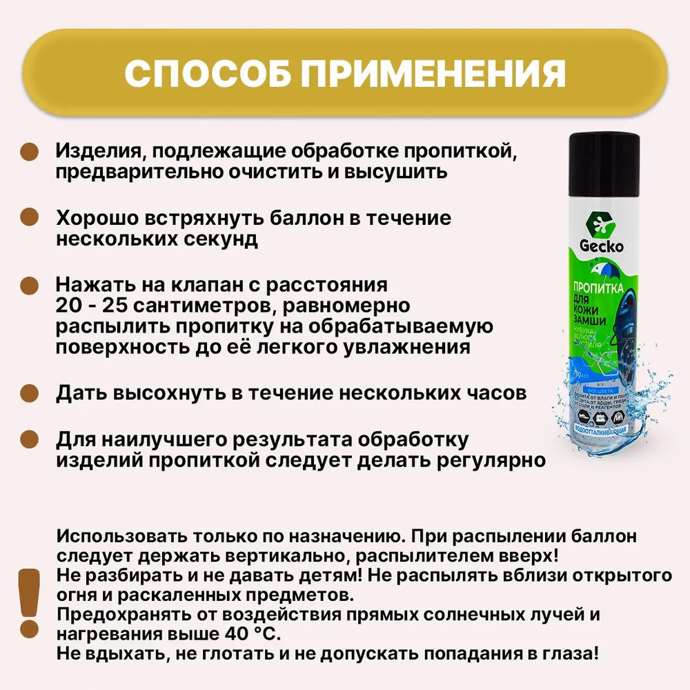 Gecko Пропитка для обуви водоотталкивающая-20% +22