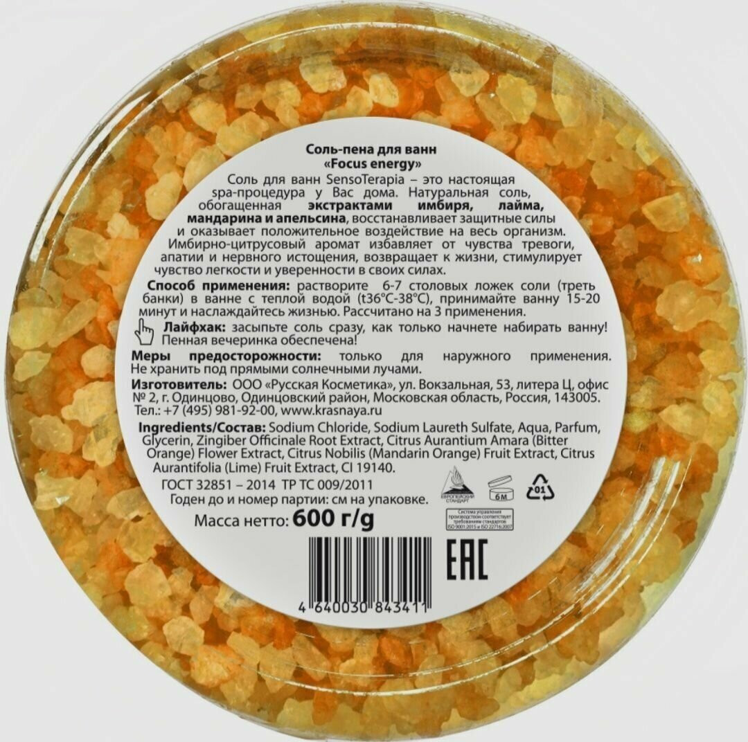 Senso Terapia Соль-пена для ванн «Focus energy»