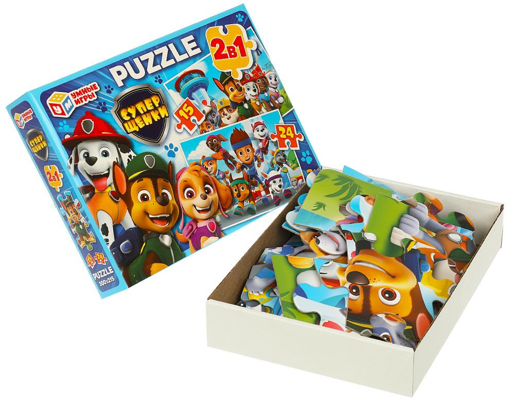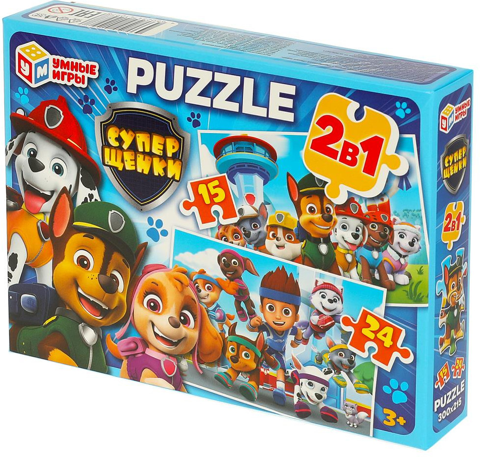 Умные игры Набор пазлов в коробке 2 в 1 «Суперщенки»В данный момент этот товар отсутствует в продаже. Возможно, у нас найдется аналогичный или похожий товар здесь. Набор пазлов в коробке 2 в 1 «Суперщенки» ТМ «Умные игры» — отличный подарок для маленького любознайки.Задача ребёнка — в правильной последовательности соединить пазлы друг с другом и получить в результате готовую картину с изображением отважных щенков-спасателей. Всего в наборе 2 варианта картинок, каждая из которых состоит из разного количества деталей: сначала можно научиться собирать вариант с наименьшим количеством элементов, тренируя и закрепляя навыки сборки, а затем постепенно переходить к более сложным композициям. |