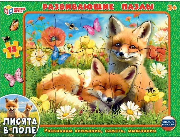 Умные игры Пазл развивающий «Лисята в поле»В данный момент этот товар отсутствует в продаже. Возможно, у нас найдется аналогичный или похожий товар здесь. Серия: Развивающие пазлы Развивающие пазлы в рамке «Лисята в поле» ТМ «Умные игры» непременно понравятся маленьким любознайкам. Задача ребёнка — в правильной последовательности соединить пазлы друг с другом и получить в результате готовую картину с изображением двух милых лис на цветочном лугу. Благодаря небольшому количеству элементов и рамке с подсказками, малыш без труда сможет выполнить задание, с каждым разом делая это всё лучше и быстрее. Все детали легко соединяются между собой и имеют сглаженные края, поэтому безопасны для ребёнка. |