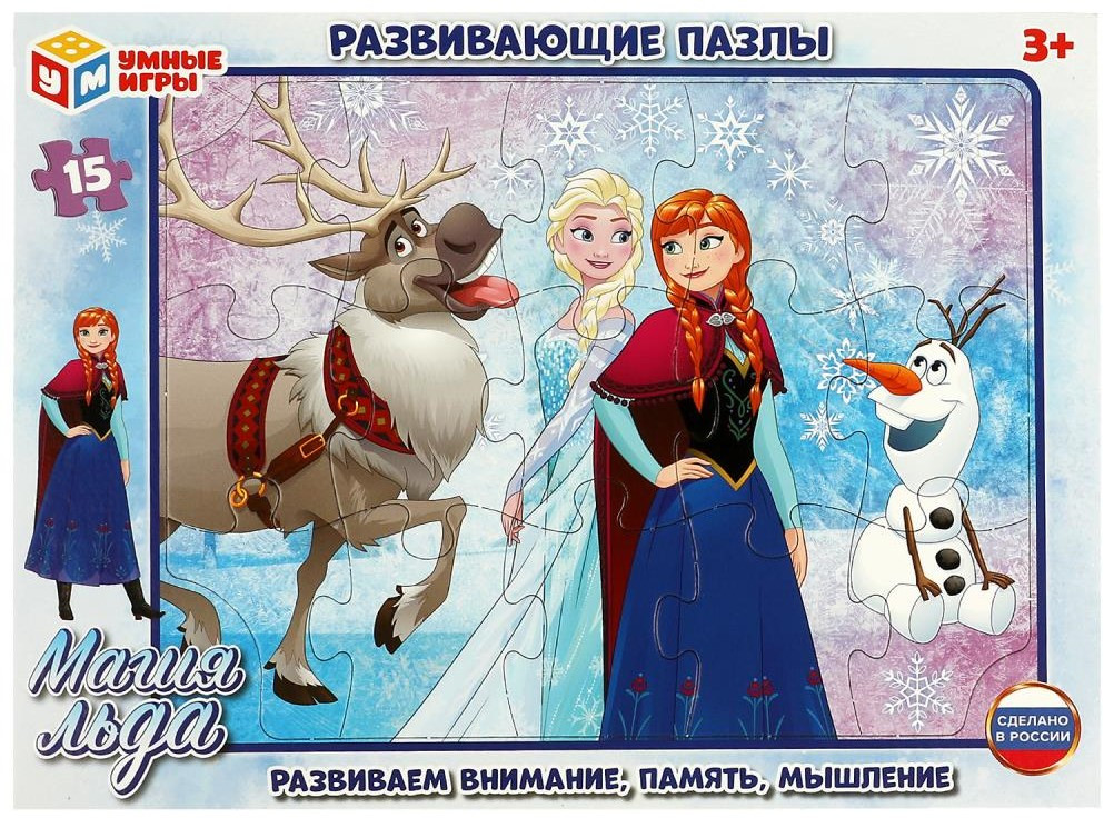💳 Оплатить за товар можно при получении 🇰🇿 Есть бесплатная доставка по Казахстану от 1 дня 🎁 Копите бонусы с каждой покупки Серия: Магия льда Развивающие пазлы в рамке «Магия льда» ТМ «Умные игры» непременно понравятся маленькому любознайке. Задача ребёнка — в правильной последовательности соединить пазлы друг с другом и получить в результате готовую картину с изображением очаровательных принцесс и их друзей. Благодаря небольшому количеству деталей и рамке с подсказками, малыш без труда сможет выполнить задание, с каждым разом делая это всё лучше и быстрее. |