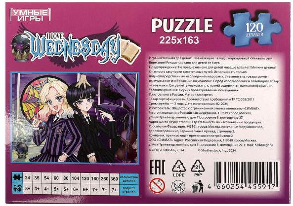 Классические пазлы в коробке «I love Wednesday» ТМ «Умные игры» непременно понравятся юным любознайкам: |