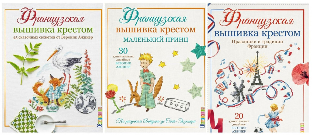 • «Французская вышивка крестом. 45 сказочных сюжетов от Вероник Ажинер»;