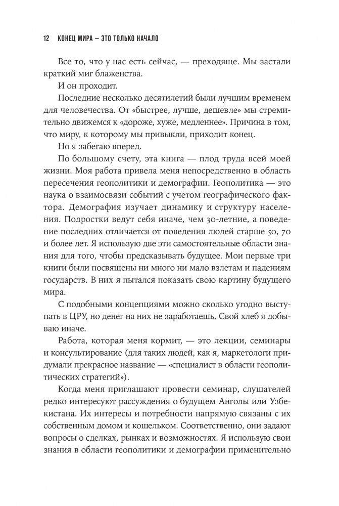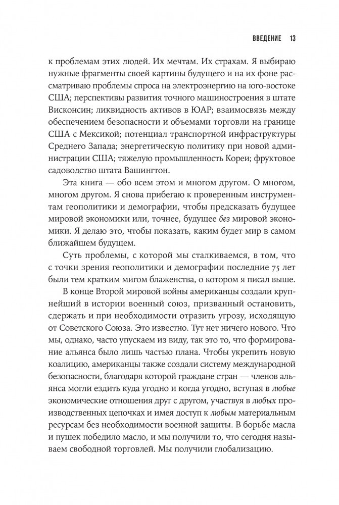💳 Оплатить за товар можно при получении 🇰🇿 Есть бесплатная доставка по Казахстану от 1 дня 🎁 Копите бонусы с каждой покупки Эпоха стабильности в мировой экономике закончилась. Какое будущее ждет нас теперь? Грозит ли человечеству конец глобализации, распад глобальных экономических связей и угасание мировой торговли? На эти вопросы пытается ответить Питер Зейхан, специалист в области геополитики и геостратегии и основатель консалтинговой компании Zeihan on Geopolitics. Анализируя важнейшие глобальные тенденции развития мировой торговли, транспорта, финансовой системы и демографических сдвигов, автор рисует нам новую картину мира, где каждая страна развивается обособленно, решает конфликты самостоятельно — и все это на фоне стареющего и сокращающегося населения. Какие страны и регионы в обозримом будущем окажутся в выигрышном положении, а какие, возможно, ждет нищета и голод? Сохранится ли доминирование США? Зейхан приглашает читателей в увлекательное и немного пугающее путешествие по экономической географии ближайшего будущего. |