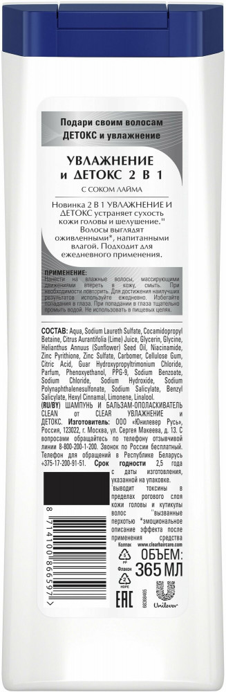 Clear vita ABE Шампунь и бальзам-ополаскиватель для волос «Увлажнение и детокс»