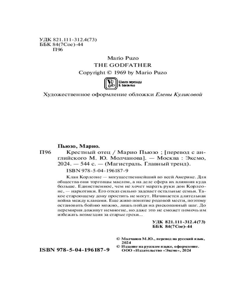 Крёстный отец-20% +129 качество книги захватывающий сюжет интересное содержание