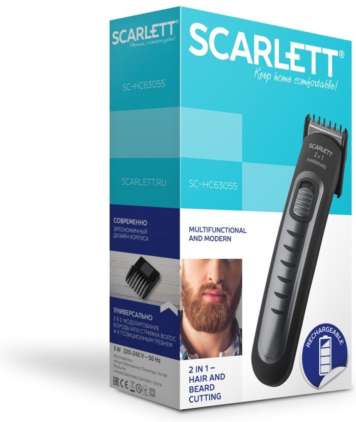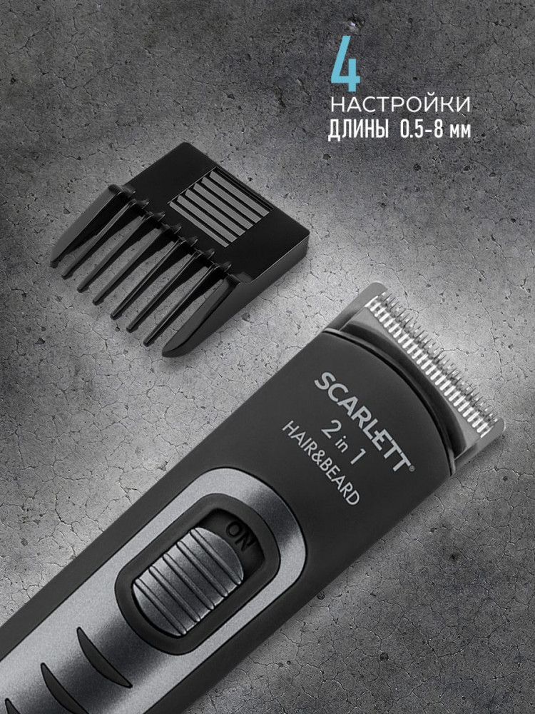 Машинка Scarlett SC-HC63055 предназначена для стрижки волос и бороды. Вы можете настроить длину от 2 до 8 мм с помощью 4-позиционной насадки и быстро подстричь ребёнка или подровнять модельную стрижку.