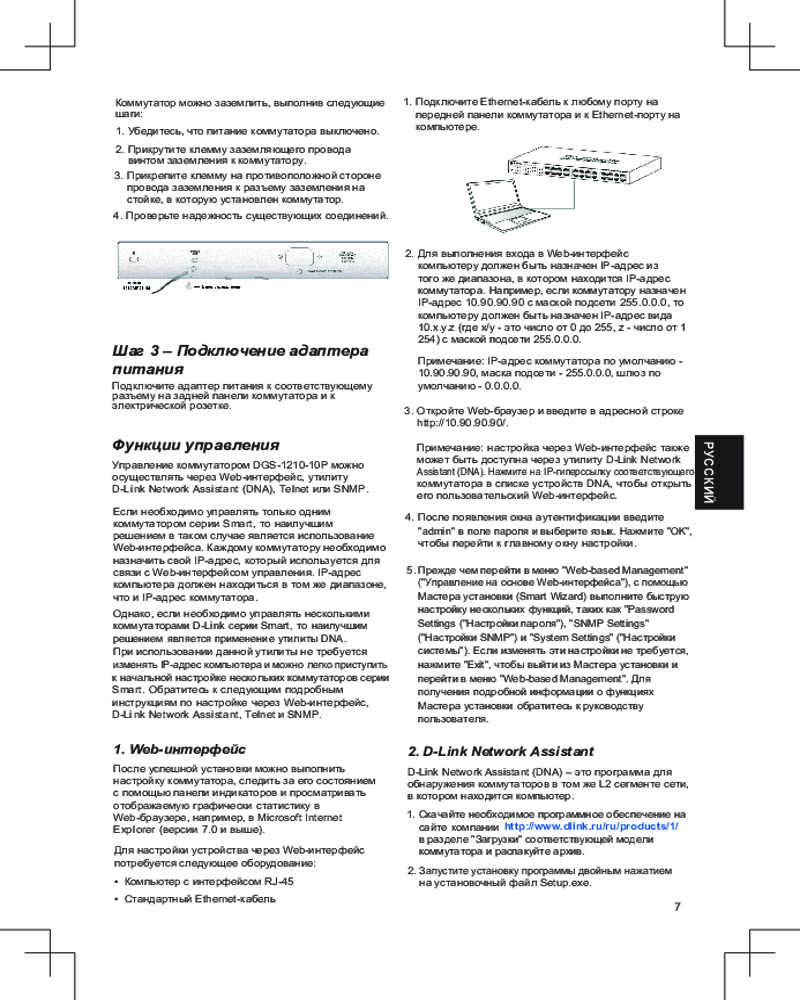 Коммутатор DGS-1210-10P поддерживает полный набор функций уровня 2, включая IGMP Snooping, Port Mirroring, Spanning Tree Protocol (STP) и Link Aggregation Control Protocol (LACP). Функция управления потоком IEEE 802,3x позволяет оптимизировать нагрузку на коммутатор для повышения надежности передачи данных. Поддерживая скорость на каждом из портов до 2000 Мбит/с в режиме полного дуплекса, коммутатор обеспечивает высокую производительность, необходимую для подключения рабочих мест. Коммутатор поддерживает функцию диагностики кабеля и функцию Loopback Detection. Функция Loopback Detection используется для определения петель и автоматического отключения порта, на котором обнаружена петля. Функция диагностики кабеля предназначена для определения состояния витой пары, а также типа неисправности кабеля.