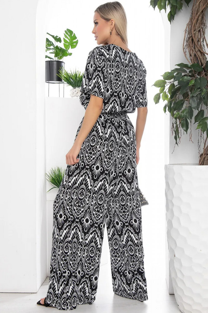 Долго искала,то без рукавки,то облегающий,то брючины узкие,а тут всё угадали. Расцветка,рукавчик,застёжка молния по груди,свободный фасон,ткань. Спасибо производителю.