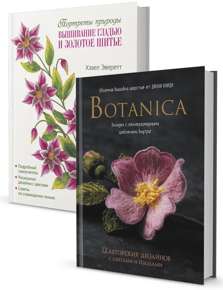 Botanica. Объемная вышивка шерстью от Джули Книдл. Вышивание гладью и золотое шитье. Портреты природы. Комплект из 2 книг+173