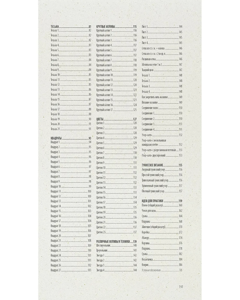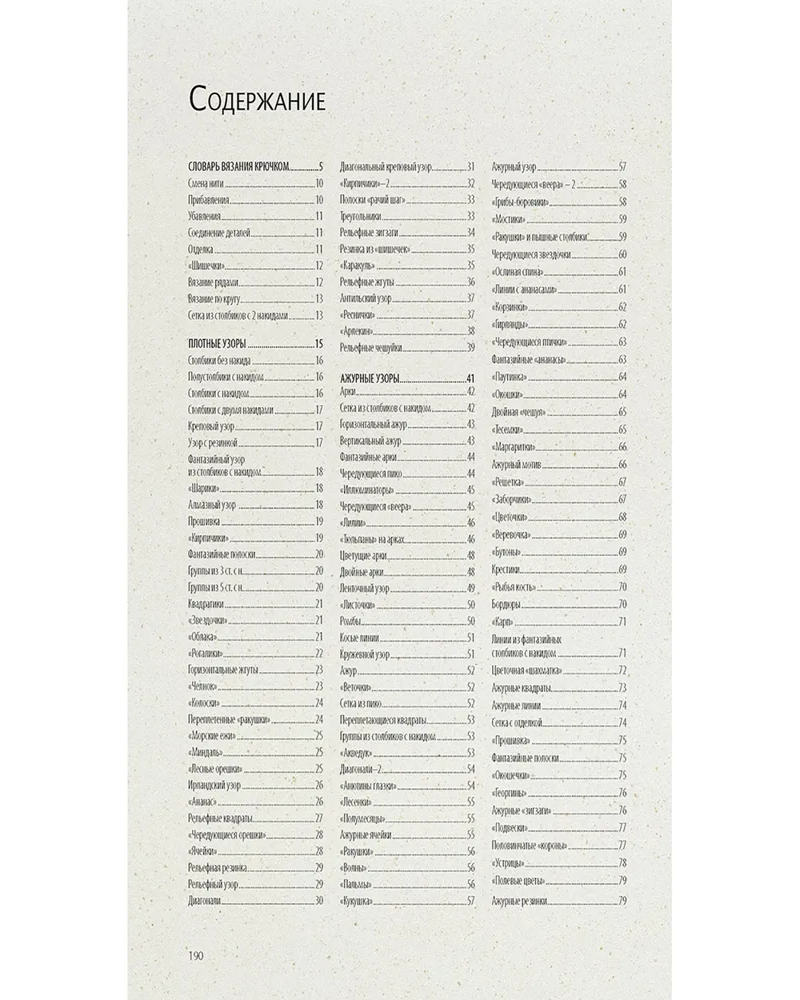 Представляем вашему вниманию уникальную книгу по вязанию крючком — коллекцию разнообразных узоров, которая обязательно придется по душе каждой рукодельнице и вдохновит на создание новых шедевров. Простые и окантовочные петли, цветы, розетки, ажурное вязание — в этой книге вас ждет 250 узоров, от самых простых до фантазийных, способных украсить любой наряд или предмет декора! Каждый мотив сопровождается подробным описанием и схемой вязания, так что книга будет полезна не только опытным, но и начинающим рукодельницам. Приведенные проекты позволят вам тут же применить свои новые знания на практике и создать оригинальные аксессуары для дома и семьи. С этой книгой вы сможете воплотить в жизнь любые проекты. |