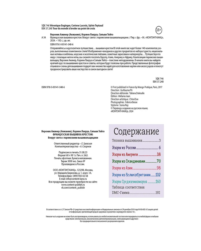 💳 Оплатить за товар можно при получении 🇰🇿 Есть бесплатная доставка по Казахстану от 1 дня 🎁 Копите бонусы с каждой покупки Серия: Французская вышивка крестом Французская вышивка крестом. Вокруг света с парижскими вышивальщицами |