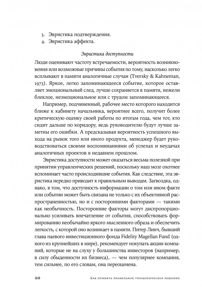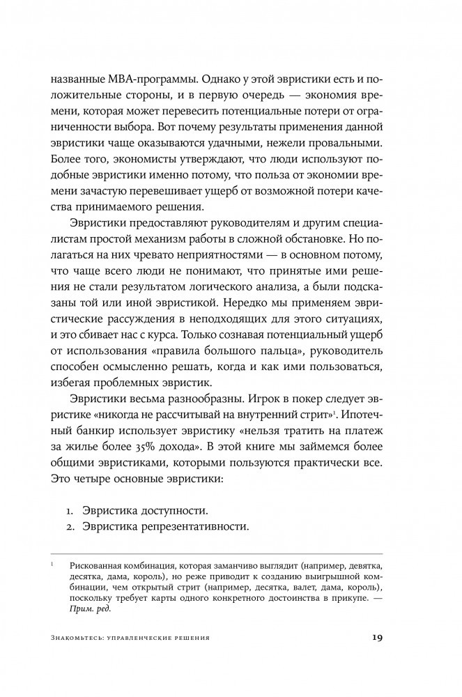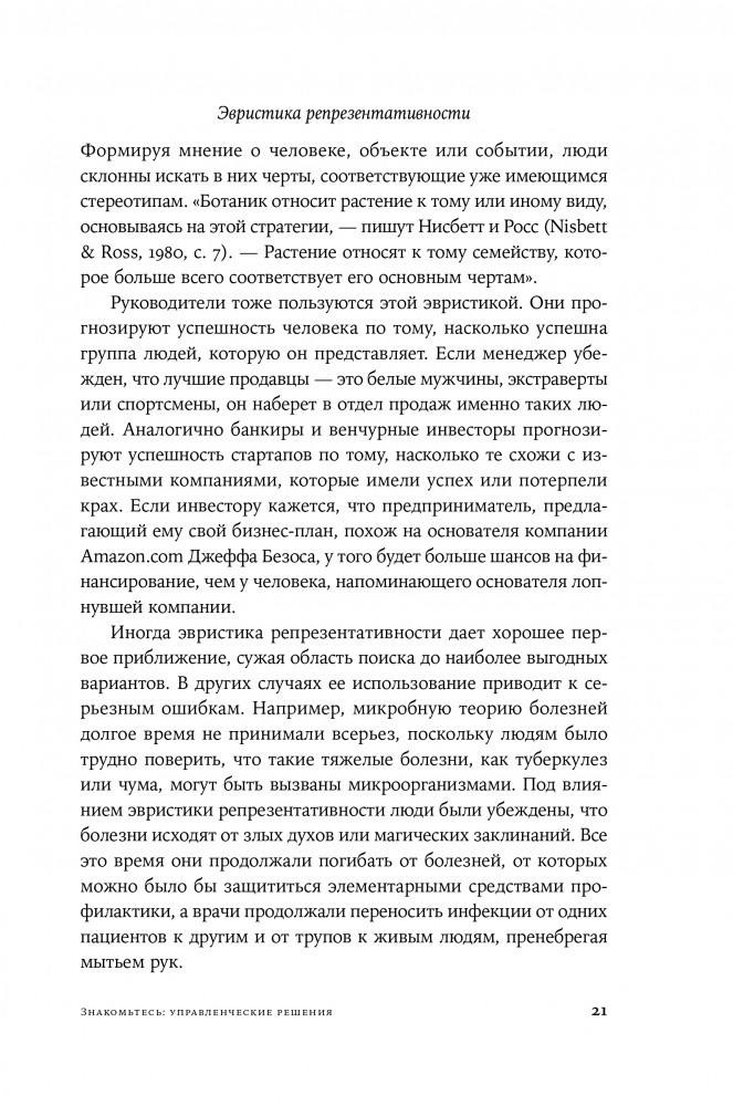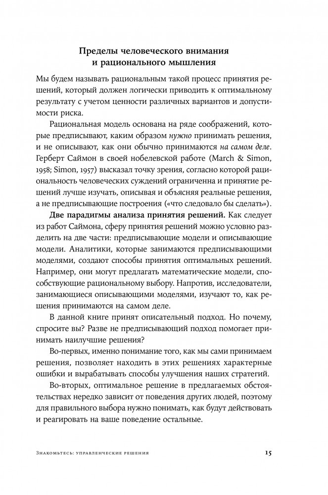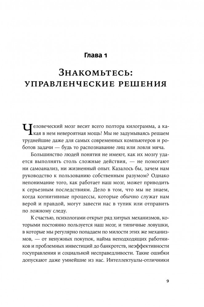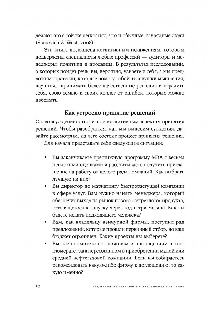 Необходимо осознать свои когнитивные искажения и разработать стратегии для более эффективного суждения, чтобы изменить ситуацию. Дон Мур и Макс Базерман детально изучают процессы принятия решений в деловой среде. Авторы рассматривают основные препятствия на пути к взвешенному выбору и дают рекомендации по совершенствованию управленческих навыков. Разобравшись в типичных ловушках мышления, каждый человек сможет научиться быстро принимать обдуманные решения.