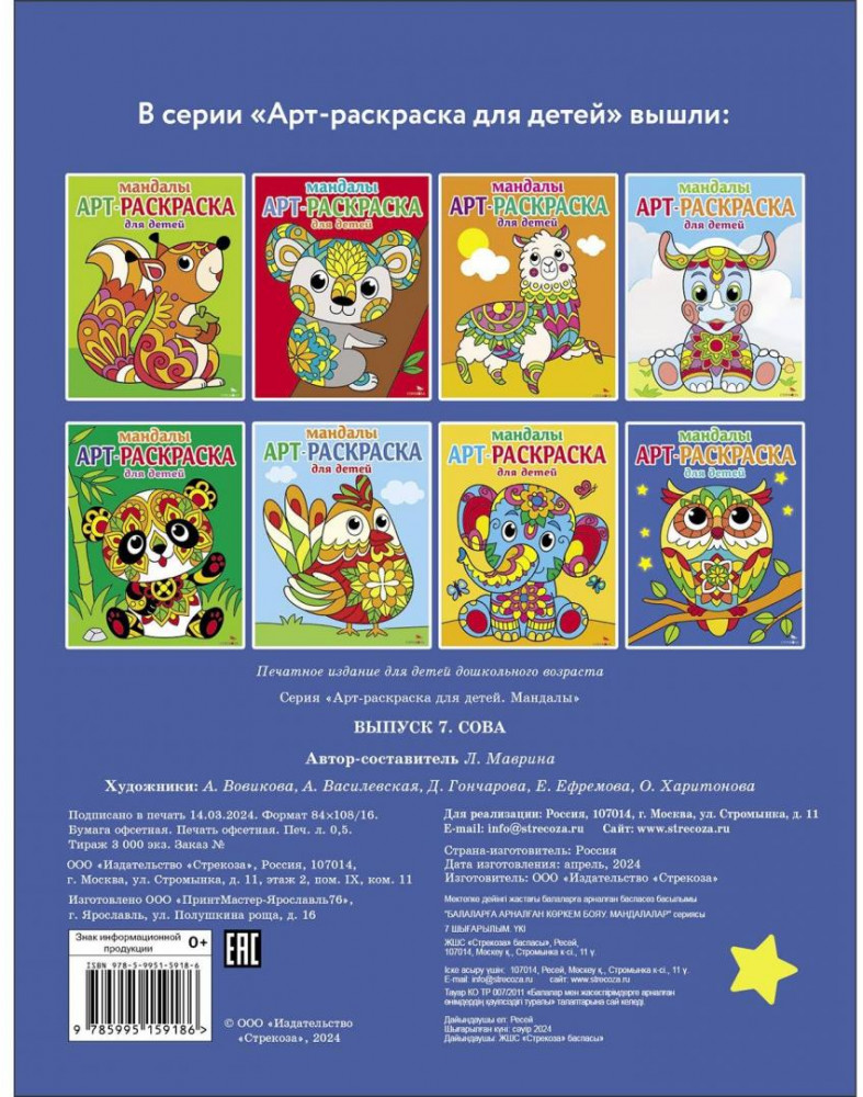 Арт-раскраска для детей. Мандалы. Выпуск 7. Сова-30% +20