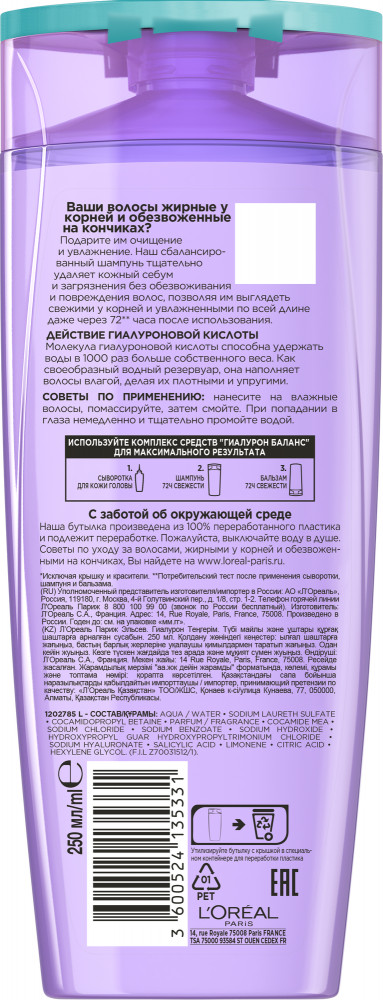 L'Oreal Paris Шампунь «Гиалурон баланс»
