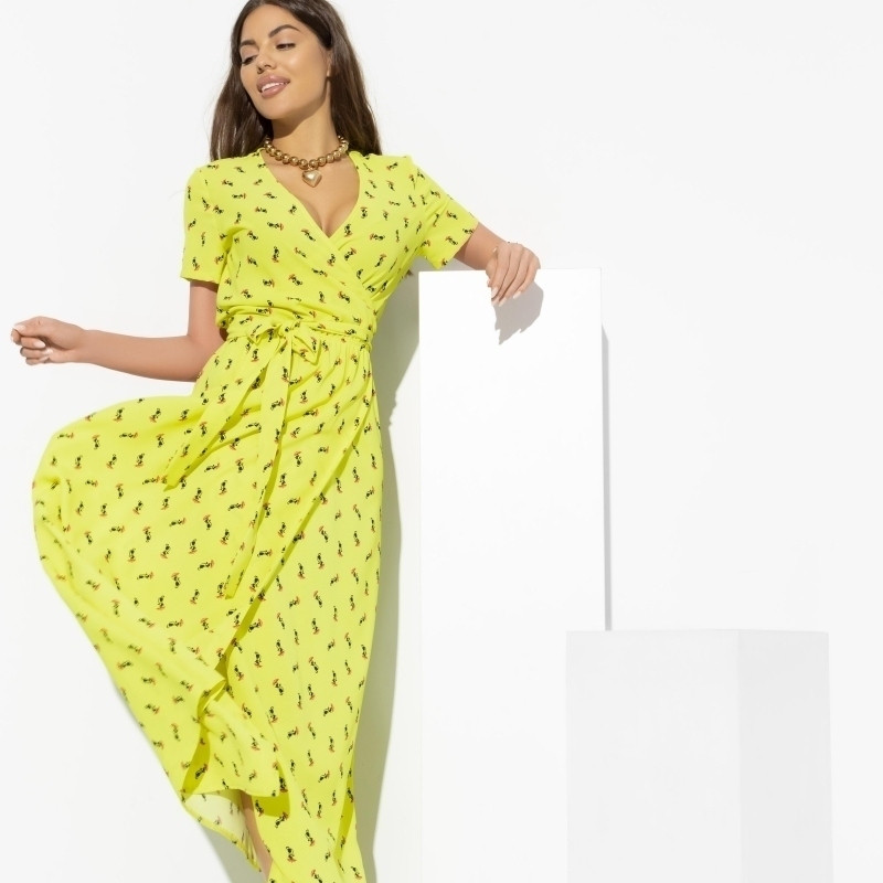 Яркое платье, материал хорошего качества. Талия на резинке, с запахом. Т е. подойдёт для полных и скроет недостатки. На мой размер 52-54 подошёл 54. С карманами по бокам очень удобно. Рост должен быть немалый, платье длинное, но можно и укоротить. Сшито аккуратно.
