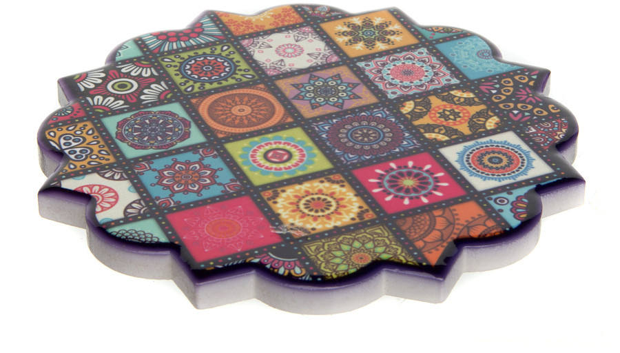 Керамическая подставка под горячее с этническим рисунком. Подставка для кружки выглядит стильно в любом интерьере, подходит для кухни, кафе, столовой, спальни, кабинета, дома. Подставка не металлическая является компонентом дизайна кухни, элементом системы хранения для кухни. Подставка для горячего подходит для кухни в стиле лофт, скандинавском стиле, стоит устойчиво на поверхности кухонного стола или столешницы кухонного гарнитура. Недорогие, красивые и нужные предметы кухонного инвентаря несомненно привлекут внимание как в качестве отличного презента на праздник, так и для личного пользования |