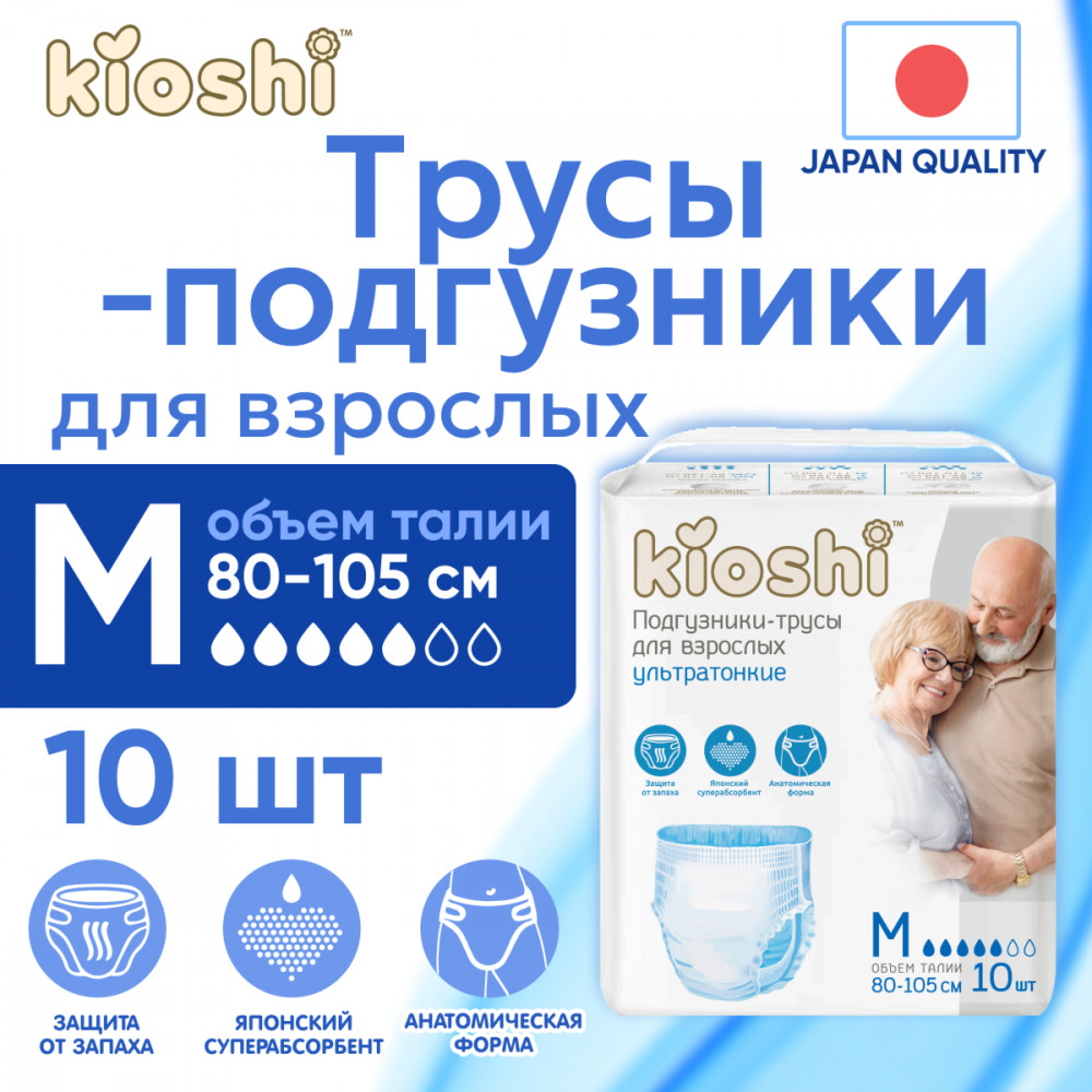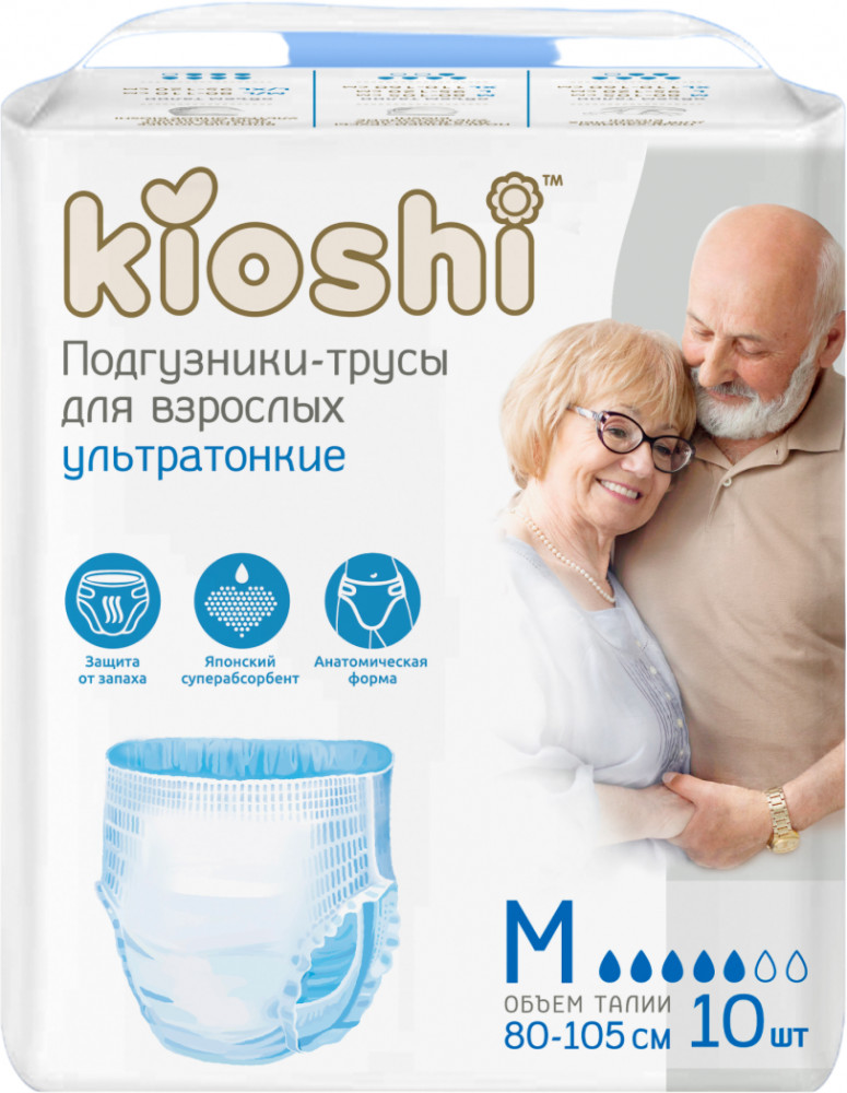 Впитывающие трусы для взрослых подойдут для людей, страдающих средней формой недержания, для лежачих больных. Трусы в размере M, подходят людям с обхватом талии 80-105 см при этом они впитывают до 1200 мл жидкости. Благодаря бортикам-манжетам вокруг ног — трусики эффективно защищают от протекания днем и ночью. Анатомическая форма трусиков достигается за счет бортиков-манжетов, которые облегают область вокруг ног и эластичного пояска, подстраивающего под строение вашего тела. Одноразовые трусики для ухода за людьми с ограниченной подвижностью идеально впитывают за счет многоуровнего впитывающего слоя: два слоя абсорбента на нано-нитях обеспечивают быстрое впитывание жидкости во внутренний слой и равномерное распределение внутри без комков. Абсорбент также блокируют запах и не пропускает его наружу. Внешний слой подгузника сделан из дышащего материала, что предотвращает появление опрелостей. Удобны в использовании: Индикатор влаги всегда подскажет, когда необходимо сменить трусики — полоски- индикатор меняют цвет с желтого на синий. Мягкий эластичный поясок, впитывающие трусы легко снимать и надевать как нижнее белье. Без использования химических отбеливателей и парфюмерных отдушек.