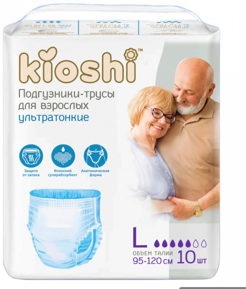Впитывающие трусы для взрослых подойдут для людей, страдающих средней формой недержания, для лежачих больных. Трусы в размере L, подходят людям с обхватом талии 90-120 см при этом они впитывают до 1200 мл жидкости. Благодаря бортикам-манжетам вокруг ног — трусики эффективно защищают от протекания днем и ночью. Анатомическая форма трусиков достигается за счет бортиков-манжетов, которые облегают область вокруг ног и эластичного пояска, подстраивающего под строение вашего тела. Одноразовые трусики для ухода за людьми с ограниченной подвижностью идеально впитывают за счет многоуровнего впитывающего слоя: два слоя абсорбента на нано-нитях обеспечивают быстрое впитывание жидкости во внутренний слой и равномерное распределение внутри без комков. Абсорбент также блокируют запах и не пропускает его наружу. Внешний слой подгузника сделан из дышащего материала, что предотвращает появление опрелостей. Удобны в использовании: Индикатор влаги всегда подскажет, когда необходимо сменить трусики — полоски- индикатор меняют цвет с желтого на синий. Мягкий эластичный поясок, впитывающие трусы легко снимать и надевать как нижнее белье. Без использования химических отбеливателей и парфюмерных отдушек.