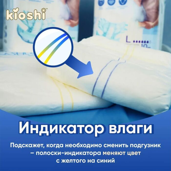 • Индикатор влаги всегда подскажет, когда необходимо сменить подгузник — полоски- индикатор меняют цвет с желтого на синий.