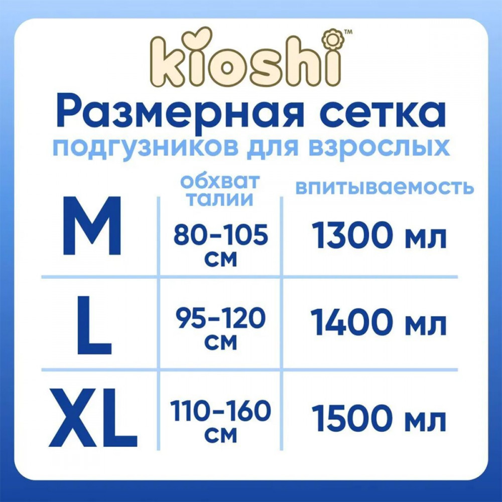 Подгузники для взрослых подойдут для людей, страдающих средней формой недержания, а также для лежачих больных. Подгузники в размере XL, подходят людям с обхватом талии 110-160 см при этом они впитывают до 1500 мл жидкости. Благодаря бортикам-манжетам вокруг ног — подгузники эффективно защищают от протекания днем и ночью.
