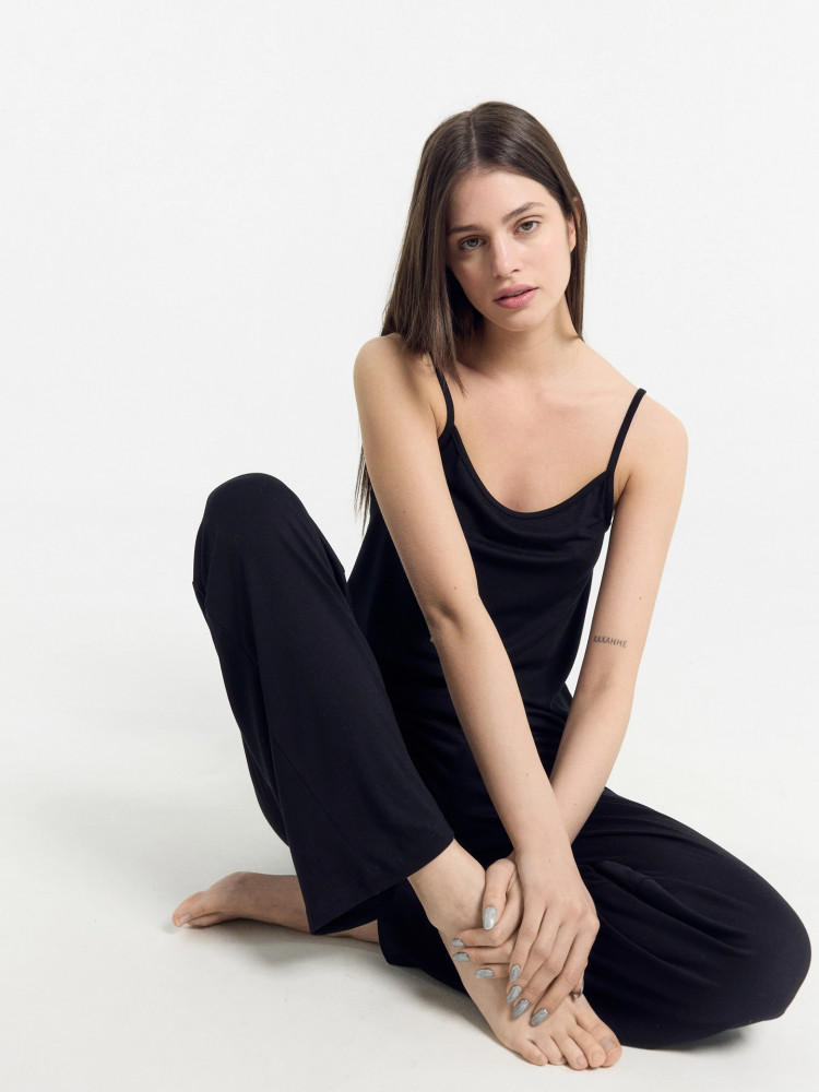 отличная пижама! замечательный, лёгкий и приятный материал. красивый черный цвет. абсолютный комфорт