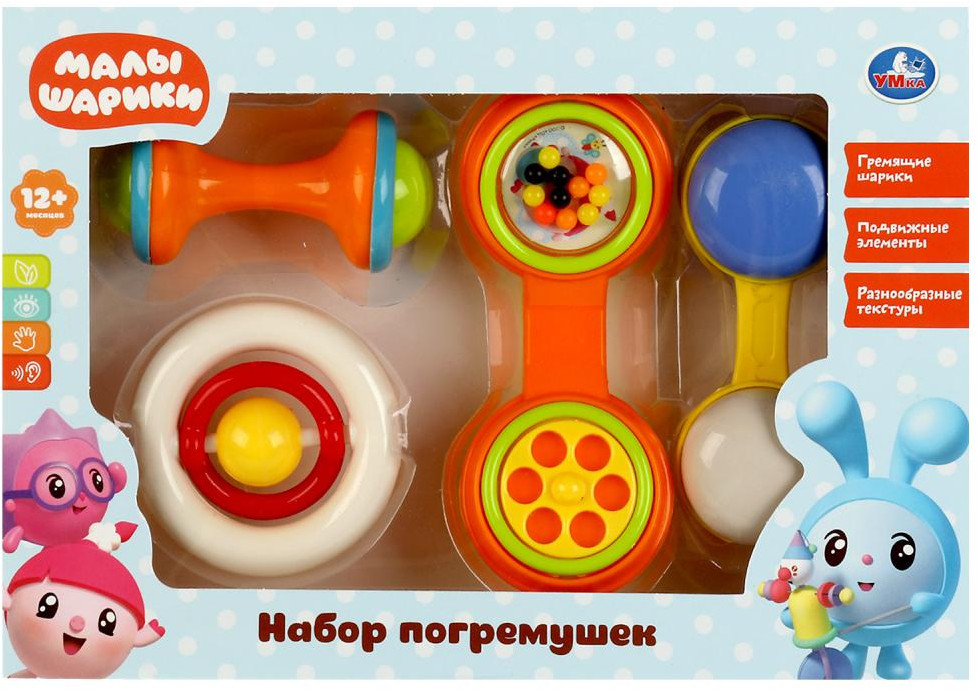 Набор погремушек «Малышарики» ТМ «УМка» разработана специально для самых маленьких: |