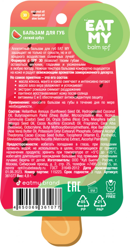 Eat my Бальзам для губ c SPF 30 «Fresh Watermelon»