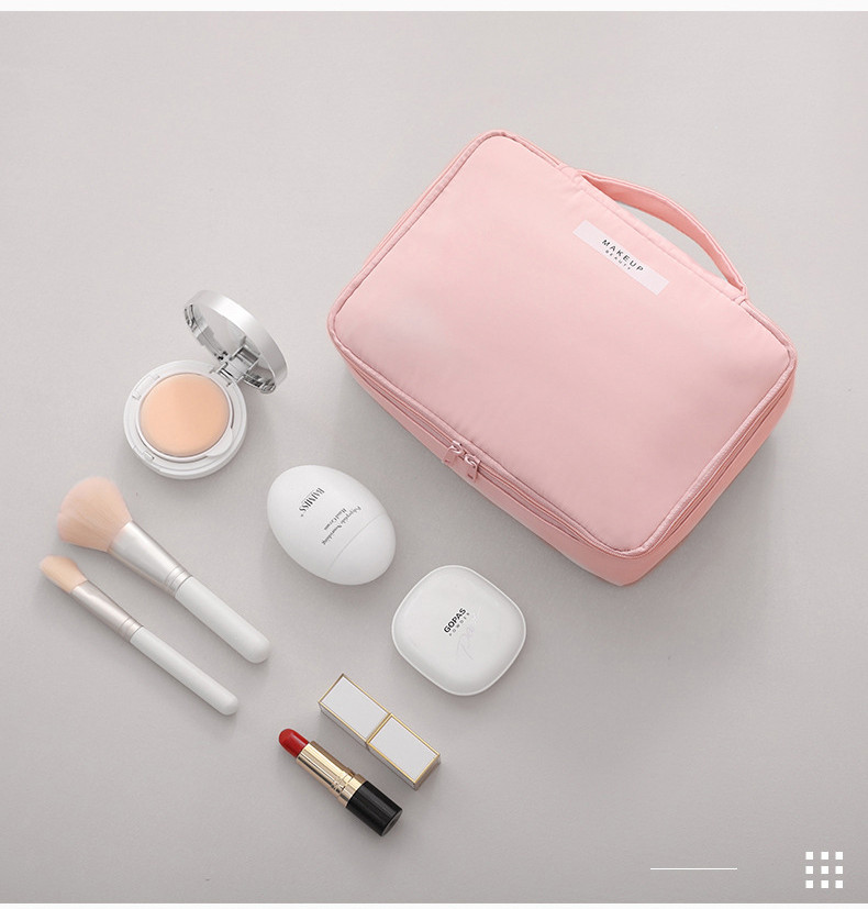 красивая, компактная, мягкая косметичка, удобна в использовании, также удобно брать в дорогу. При загрязнении можно постирать как вручную, так и в стиральной машинке. Внутри этой косметички есть ещё одна маленькая косметичка. При необходимости можно вторую брать с собой ежедневно, положив необходимую косметику