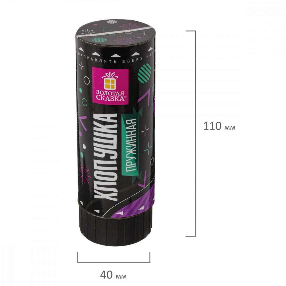 Пружинная хлопушка от ТМ «Золотая сказка» предназначена для создания отличного настроения и атмосферы настоящего веселья на любом празднике — новогодней вечеринке, торжестве в честь Дня Рождения, выпускном, корпоративе или любом другом праздничном событии.