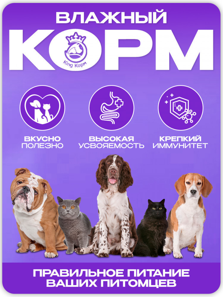 Представляем вам влажный универсальный корм для кошек и собак — идеальный выбор для ваших питомцев, который обеспечивает полноценное и сбалансированное питание. Наш корм разработан с учетом потребностей как кошек, так и собак, чтобы удовлетворить их вкусовые предпочтения и обеспечить оптимальное здоровье.