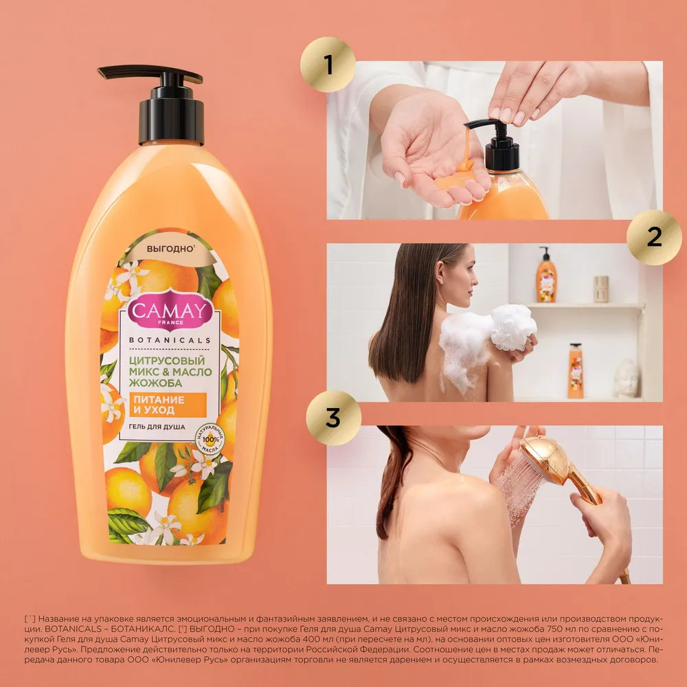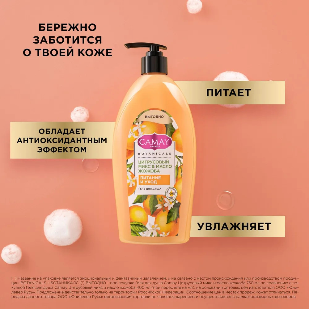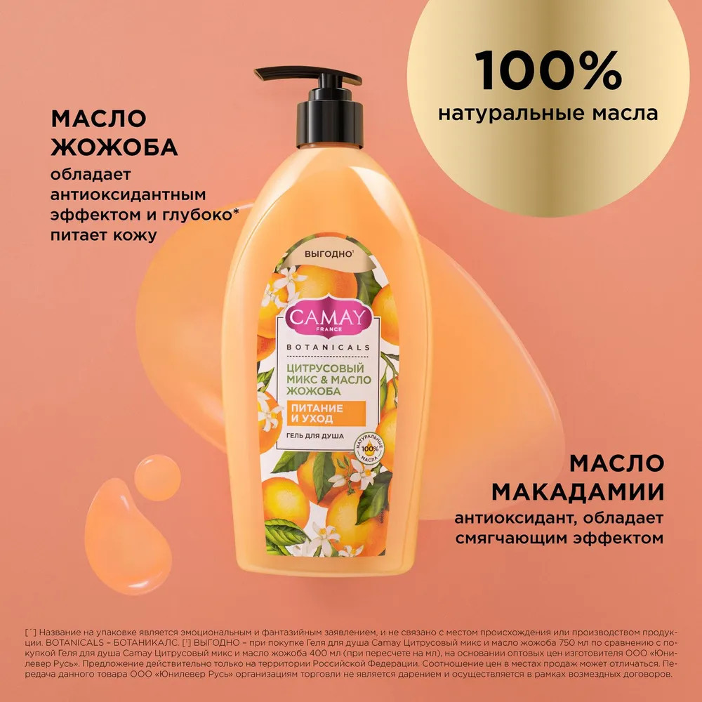 Camay Гель для душа «Цитрусовый микс и масло жожоба»