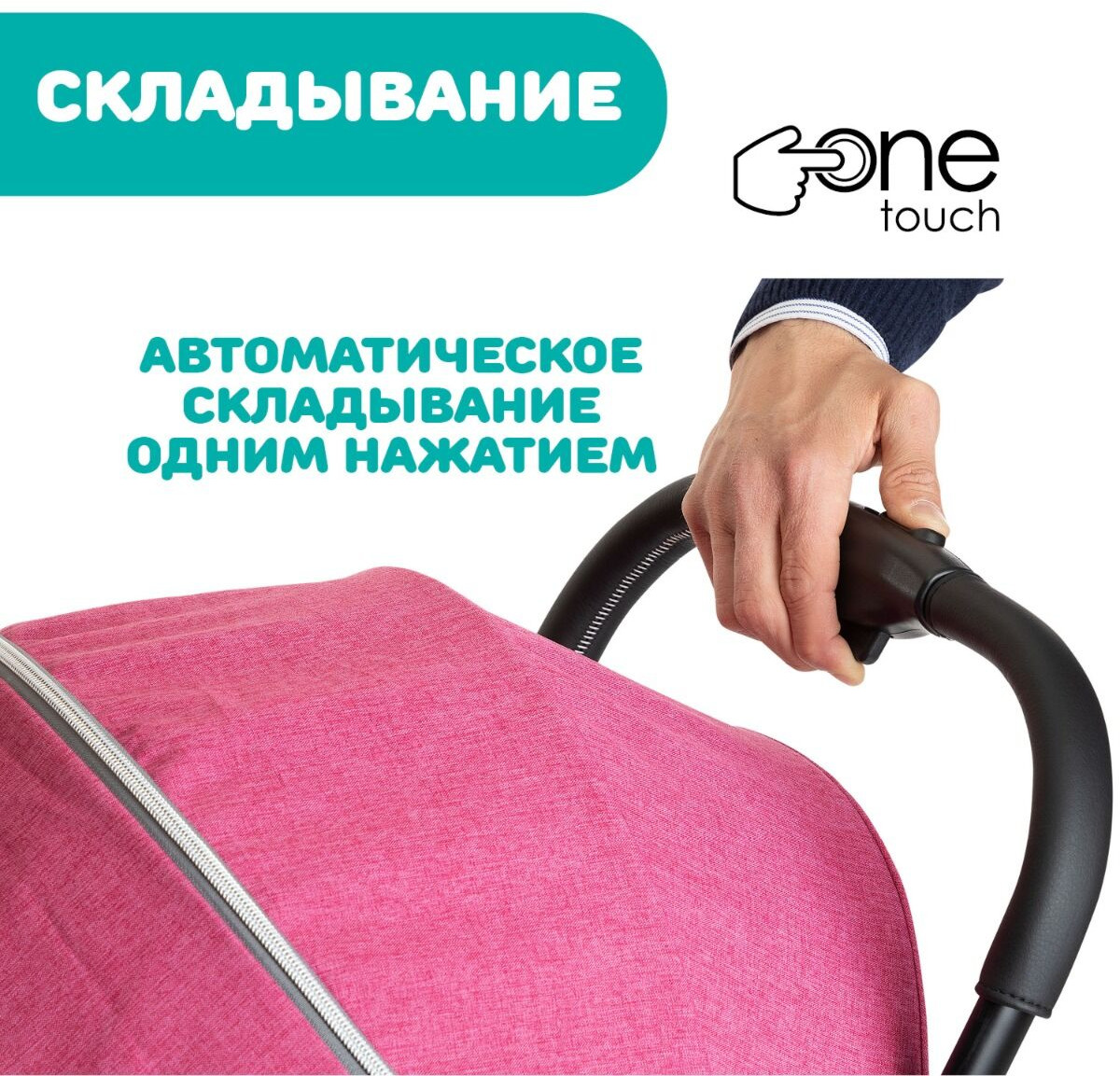 • автоматическое складывание. Коляска сама складывается всего одним движением. В сложенном виде очень компактная и стоит без опоры;