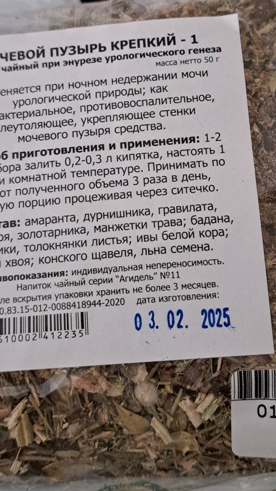 💳 Оплатить за товар можно при получении 🇰🇿 Есть бесплатная доставка по Казахстану 🎁 Копите бонусы с каждой покупки Применяется при ночном недержании мочи урологической природы; как антибактериальное, противовоспалительное, болеутоляющее, укрепляющее стенки мочевого пузыря средства. |