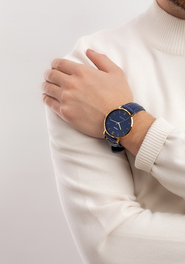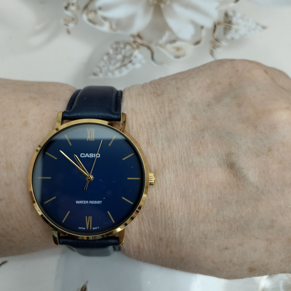Для себя выбрала модель для мужчин из-за диаметра корпуса более 40,т.к. на моем запястье лучше смотрится часы покрупнее. На мой взгляд золото на темном синем хорошее сочетание по цвету. Стильные, модные и удобные!!!